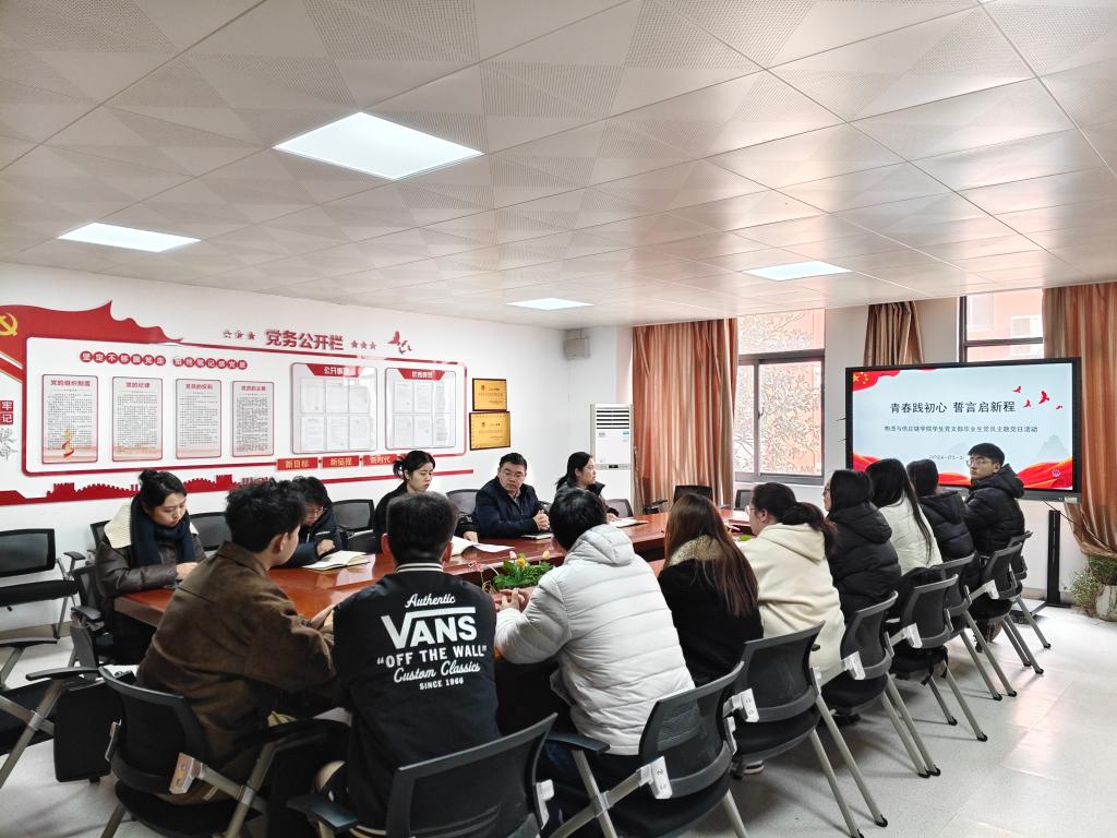 为引导毕业生党员坚定理想信念、牢记使命担当,在新的人生阶段继续发挥先锋模范作用,物流与供应链学院学生党支部于2026年1月10日举办了“青春践初心 誓言启新程”毕业生党员主题党日活动。学院党总支副书记王军、相关教师及全体毕业生党员参与活动。