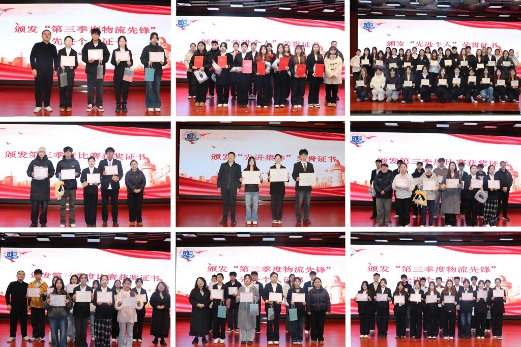 表彰大会依次为各项赛事活动、“物流先锋”技能之星、阅读之星、先进个人、先进集体代表颁发荣誉证书。获奖代表着正装出席,精神昂扬,在热烈掌声中依次登台领奖,充分彰显了物流学子奋发有为、全面发展的优秀品质。