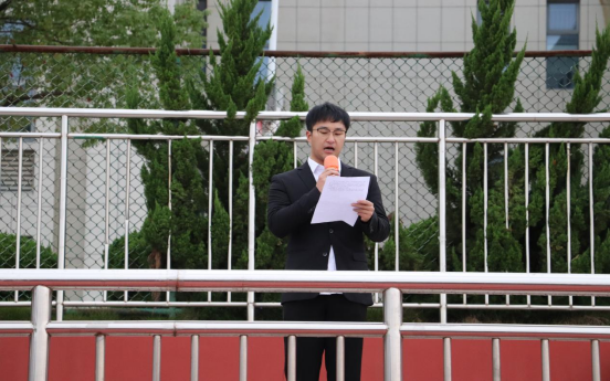升旗礼毕,学生代表24201班侯珺凯同学作国旗下发言。他结合自身学习与实践体会,表达了新时代物流学子的理想与担当,呼吁同学们珍惜时光、勤学苦练,积极参与技能竞赛。